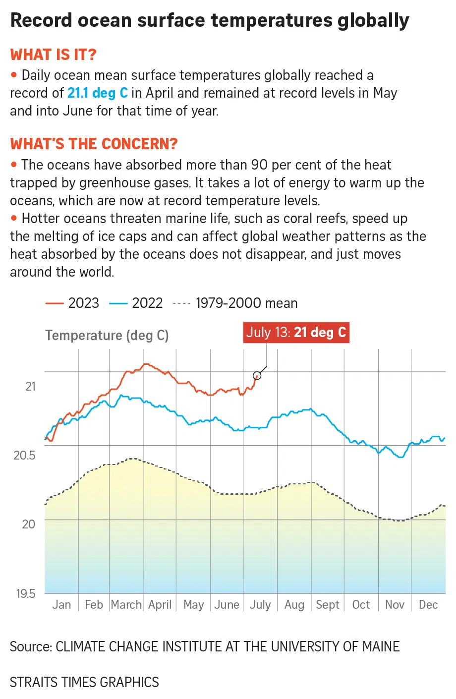 These two factors are most likely to blame for the record-breaking heat, in the atmosphere and in the oceans, said Ms Kimberley Reid, postdoctoral research fellow in atmospheric sciences at Monash University in Melbourne, in a commentary for The Conversation news site on July 6.