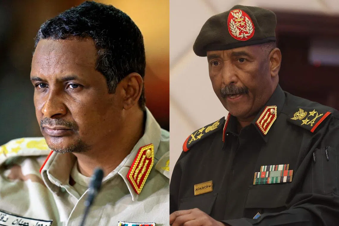 Rapid Support Forces commander Mohamed Hamdan Dagalo (left) and Sudan‘s Army chief Abdel Fattah al-Burhan are at the heart of a full-blown battle for control of Sudan.