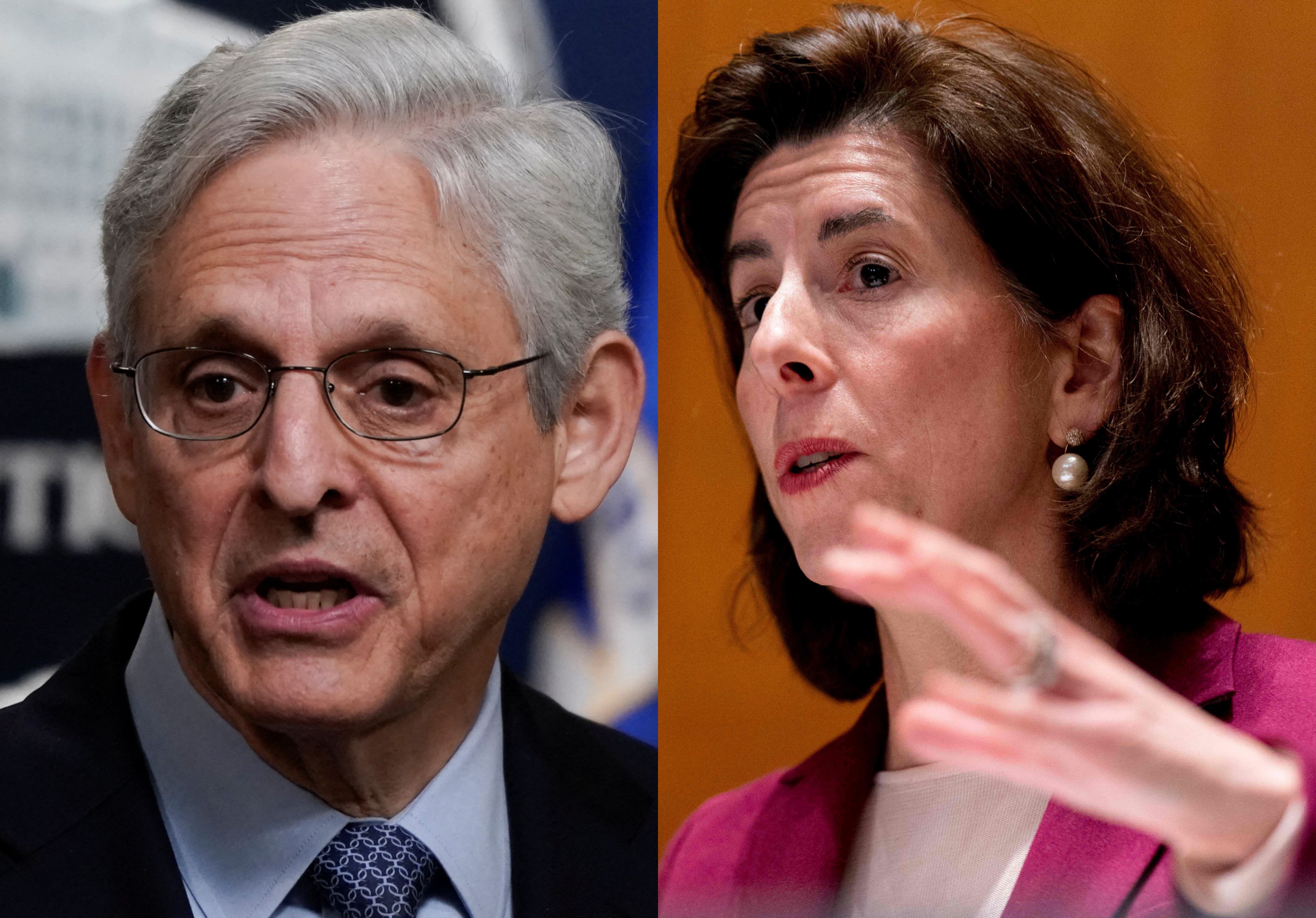 Attorney-General Merrick Garland (left) and Commerce Secretary Gina Raimondo have tested positive.