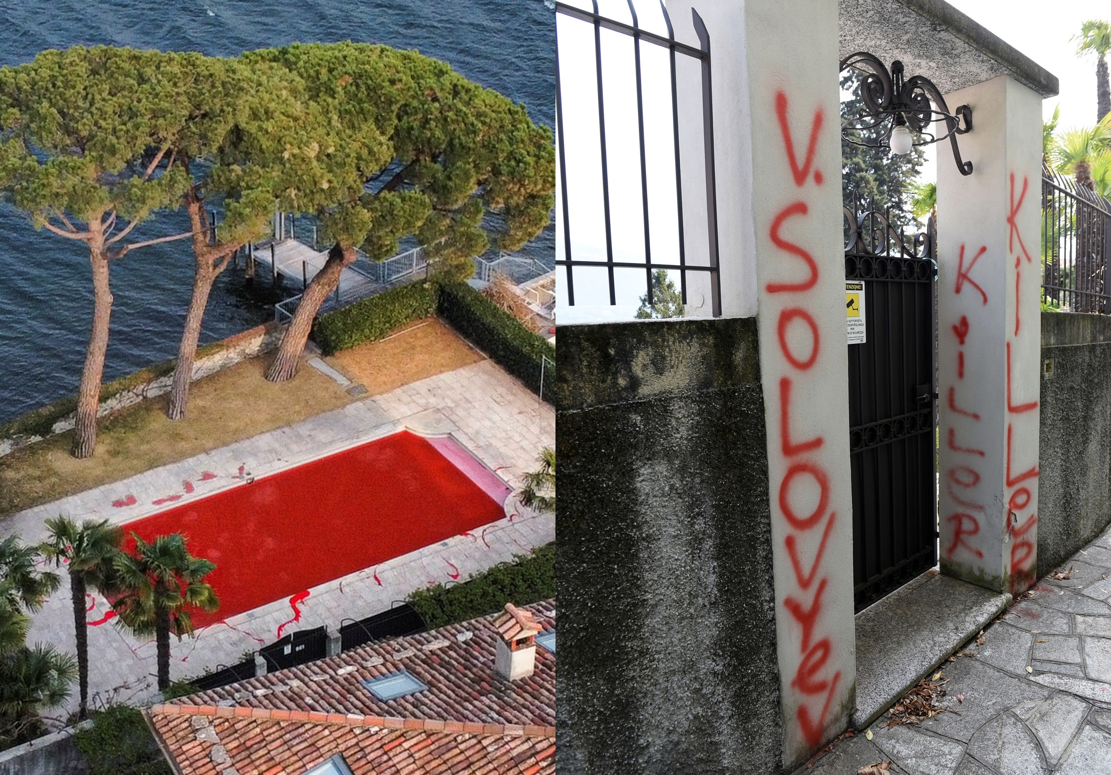 The words "killer" and "no war" were sprayed onto the walls of the villa in Pianello del Lario, reportedly owned by Vladimir Solovyev, while the swimming pool overlooking Lake Como was coloured red, according to images taken by the ANSA news agency.