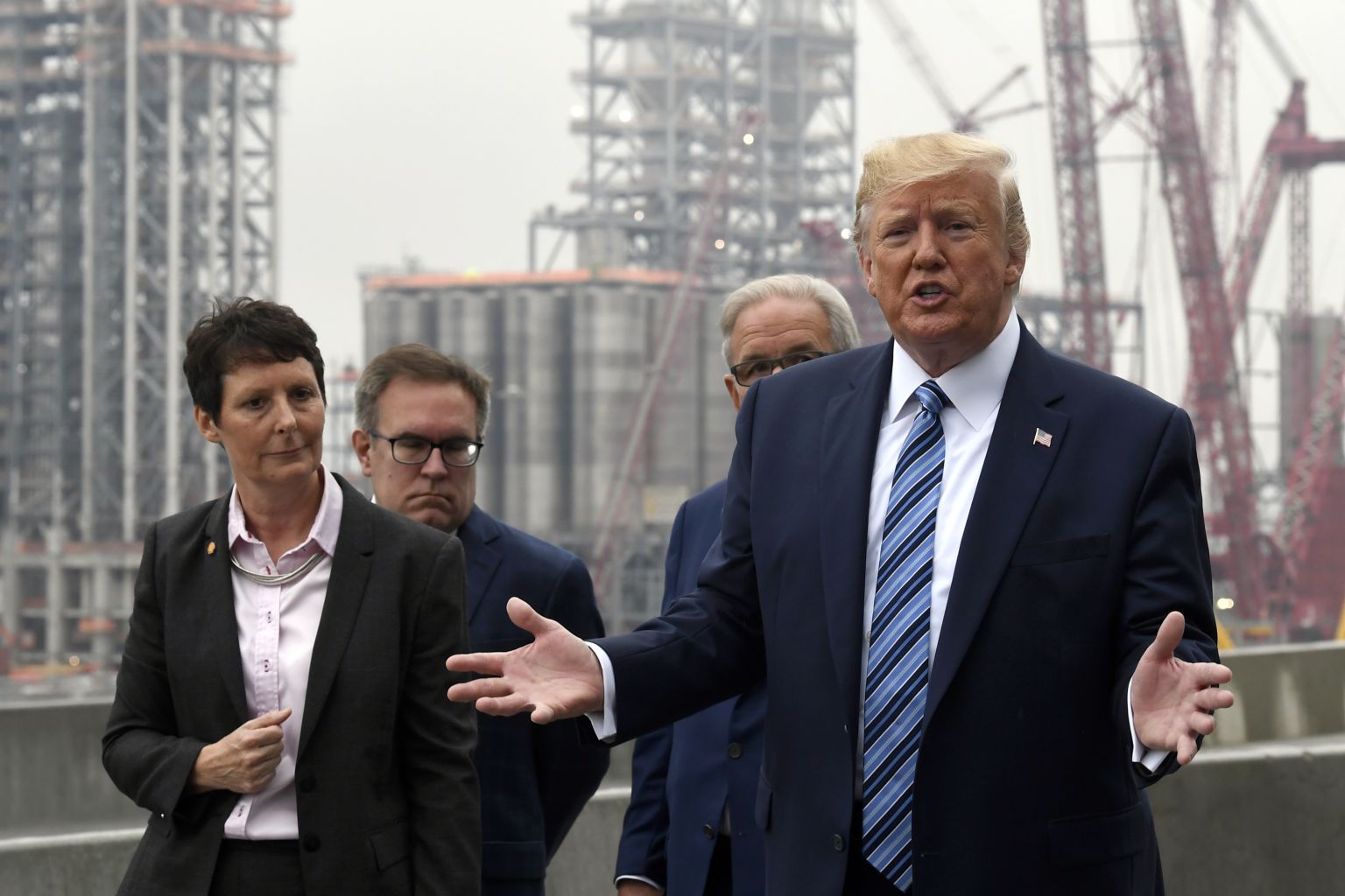 Donald Trump speaking to the media during a visit to Monaca, Pennsylvania..