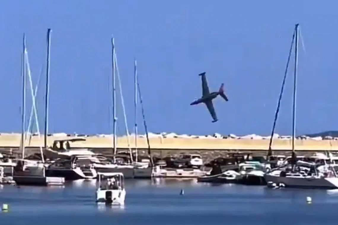 The Fouga Magister aircraft was performing at Le Lavandou just before a demonstration by the French air force’s elite acrobatic flying team, a French air force spokesman told AFP.