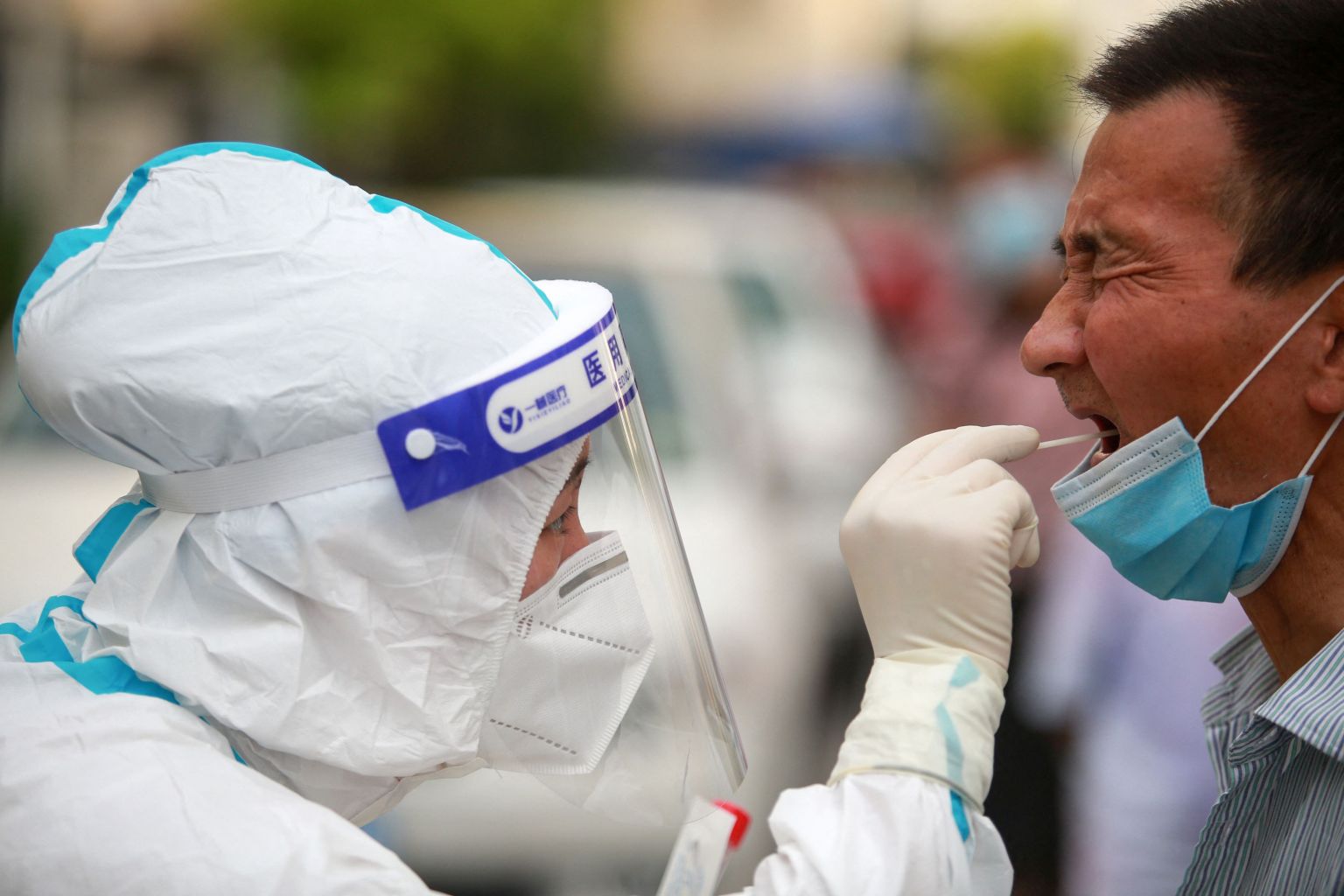 A man undergoes a swab test for coronavirus in Yangzhou in China's eastern Jiangsu province, on Aug 3, 2021.