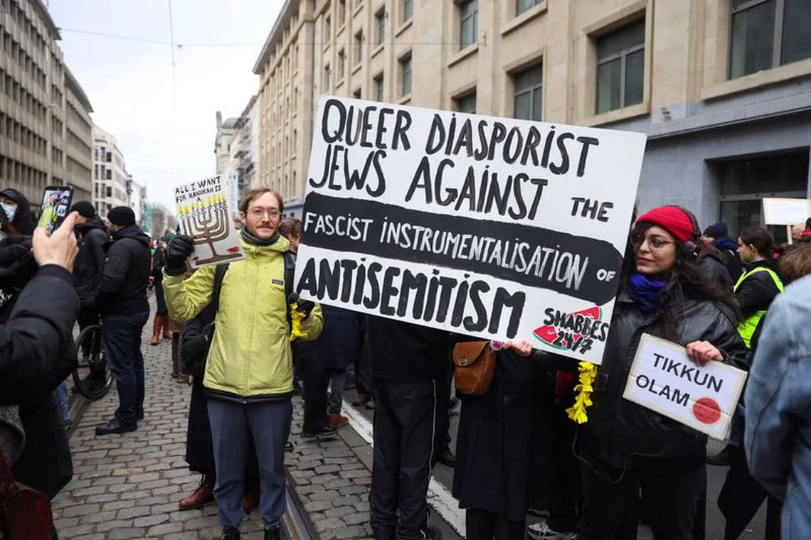 Thousands of people took to the streets of Brussels on Dec 10 in a protest against anti-Semitism, after a surge in outbreaks across Europe amid the war between Israel and the Hamas militant group.