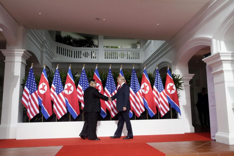 US President Donald Trump and North Korean leader Kim Jong Un at their first summit in Singapore on June 12, 2018. Mr Trump will meet Mr Kim one-on-one in Hanoi over North Korea's nuclear arsenal, according to senior administration officials.