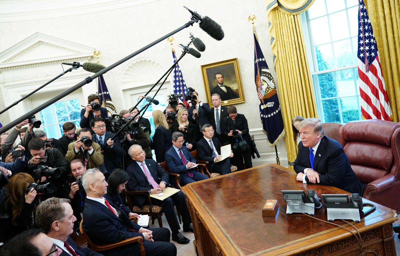 Donald Trump meets Chinese Vice-Premier Liu He and trade talk representatives in the Oval Office.