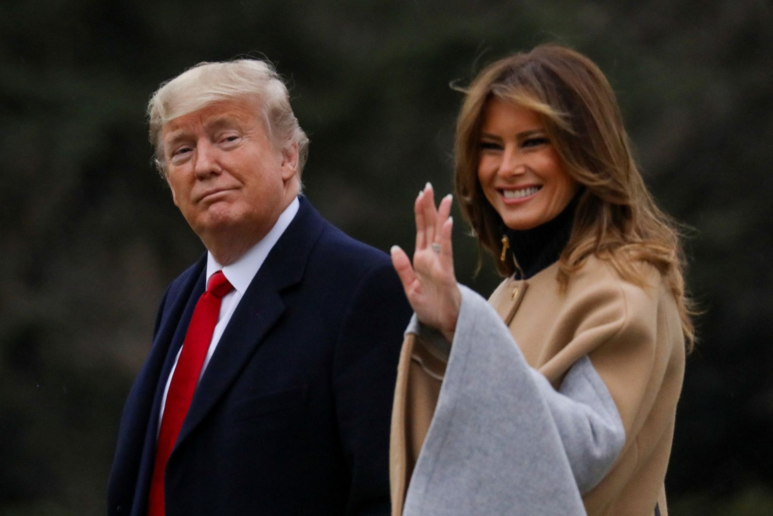 US President Donald Trump departs with first lady Melania Trump for travel to Florida from the South Lawn of the White House in Washington,Jan 31, 2020.