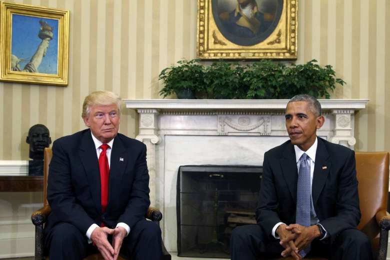 US President Barack Obama (right) meets with President-elect Donald Trump to discuss transition plans in the White House Oval Office in Washington, US, on Nov 10, 2016.