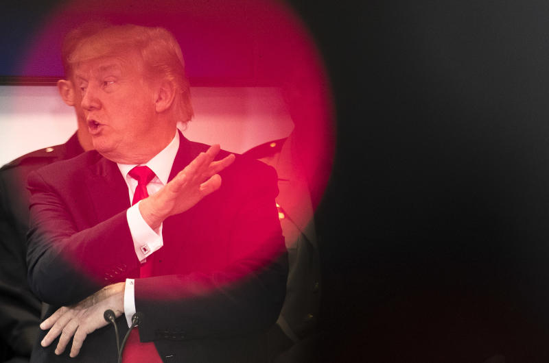President Donald Trump participates in a discussion at the Customs and Border Protection National Targeting Center in Sterling, Va., Feb. 2, 2018.