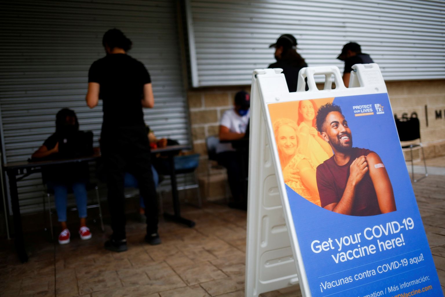 People register for coronavirus vaccinations at a centre, in El Paso, Texas.