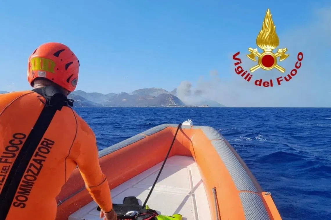 Dozens of beachgoers in Sardinia were forced to flee by boat on July 27 when a huge wildfire broke out nearby, blocking other escape routes, firefighters on the Italian island said.