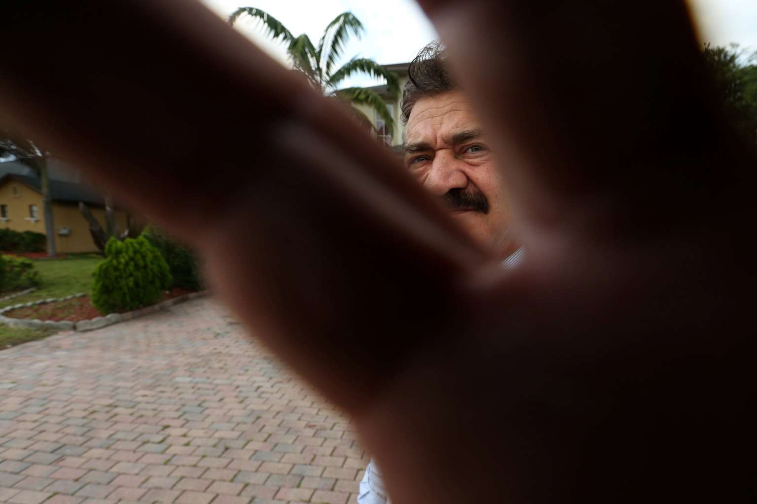 Seddique Mateen, father of Omar Mateen, grabs a photographer's lens at his home in Port Saint Lucie, Florida, June 14, 2016.