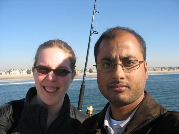 A woman identified in media reports as Ashley Hasti (left) is said to have dated and been shot by UCLA shooter Mainak Sarkar (right).
