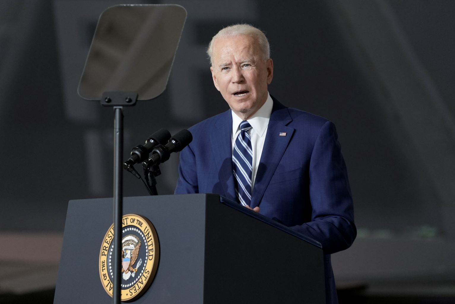 US President Joe Biden delivers a speech while visiting Joint Base Langley-Eustis in Hampton, Virginia.
