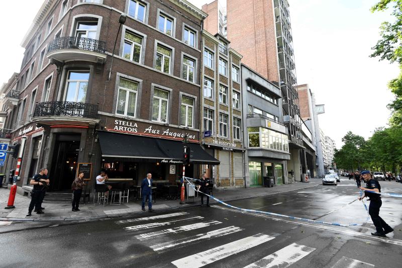 A policeman sets a security perimeter at the scene of a shooting in Liege, on May 29, 2018.