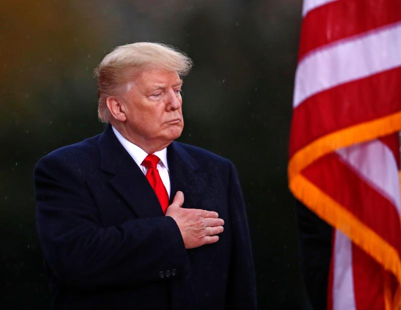 US President Donald Trump attends a ceremomy in the American Cemetery of Suresnes, outside Paris, on Nov 11, 2018, as part of Veterans Day and the commemorations marking the 100th anniversary of the Nov 11, 1918 armistice, ending World War I.