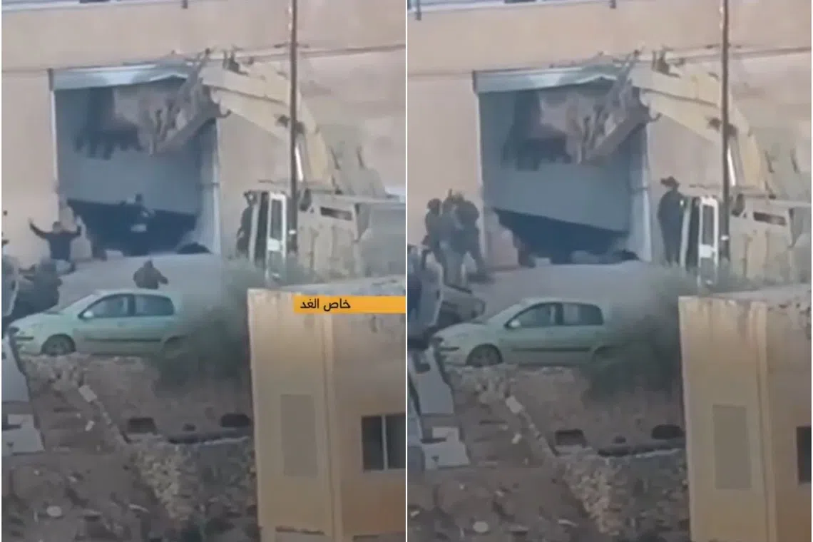 In the footage, the men are seen exiting a building surrounded by armed Israeli forces in the northern West Bank city of Jenin, lifting their shirts and lying on the ground in an apparent surrender.