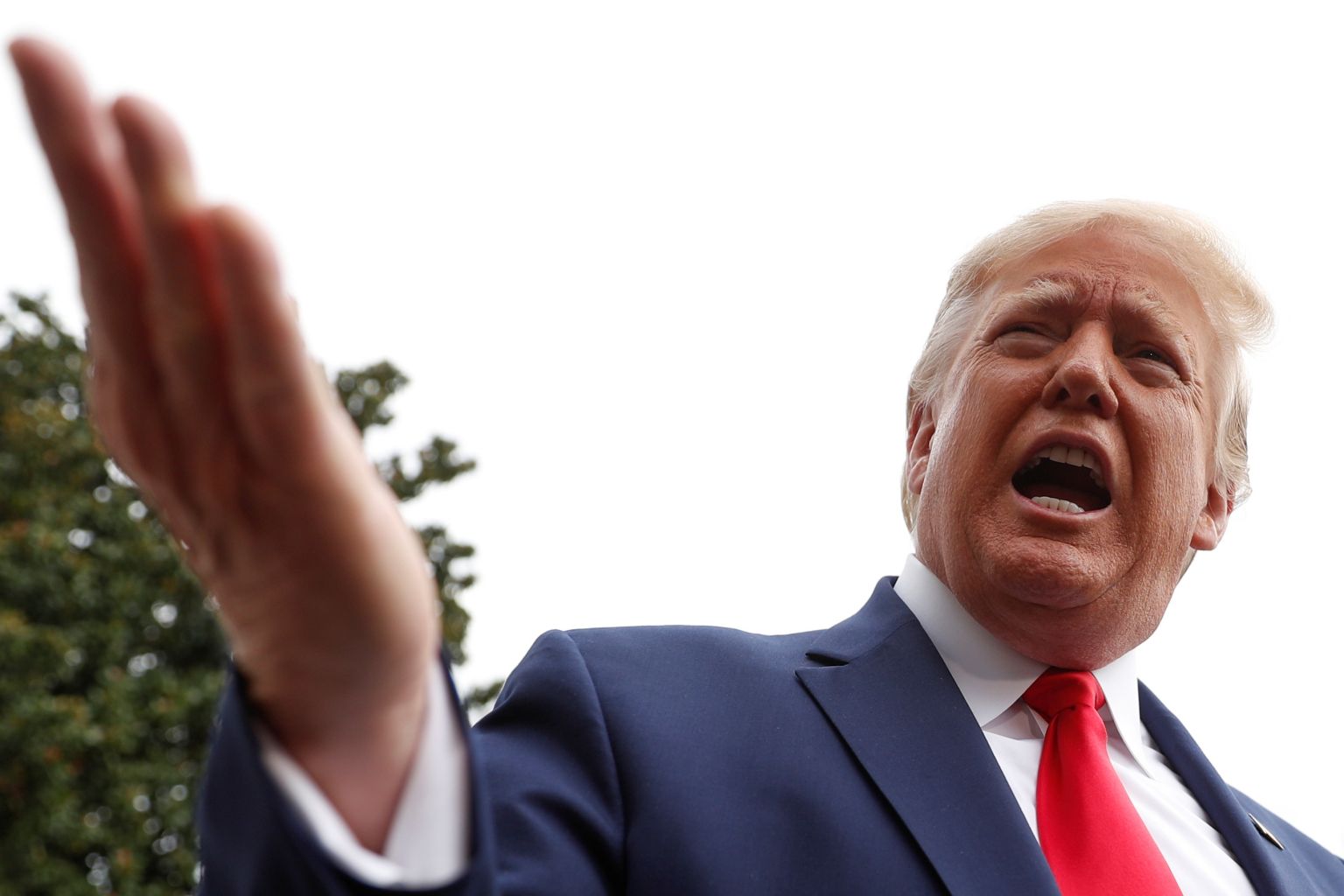 US President Donald Trump speaks to reporters as he departs the White House for travel to South Carolina.