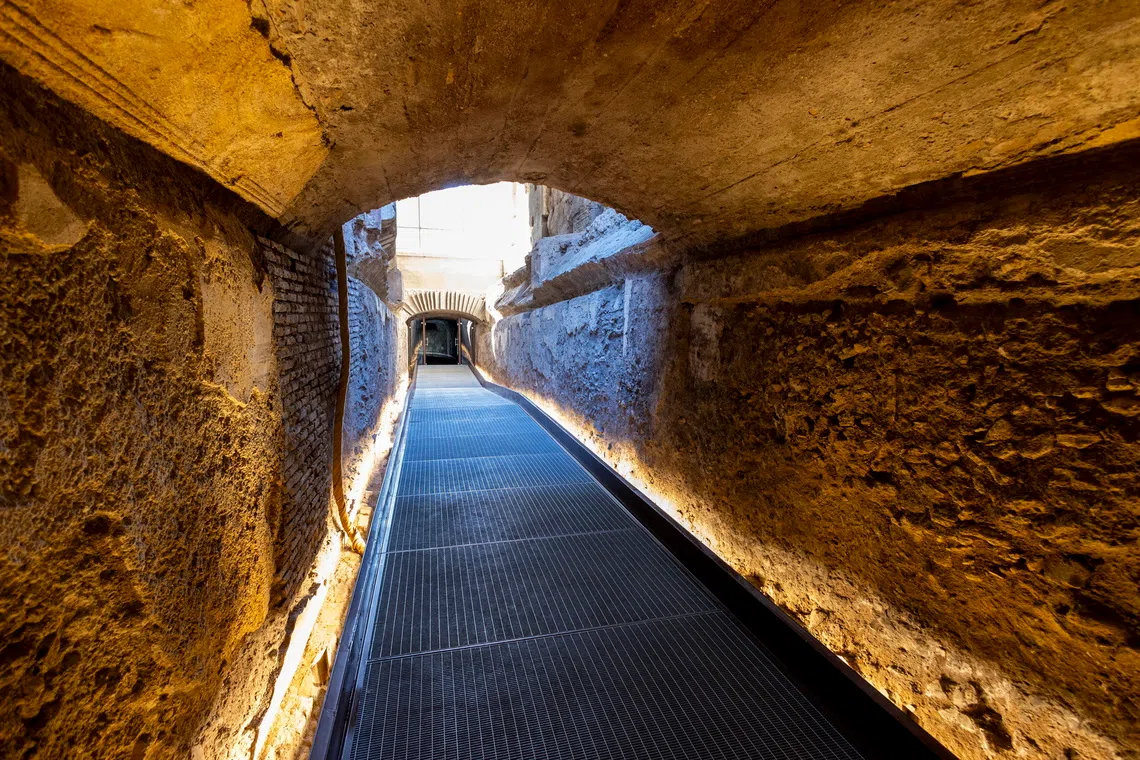 It was cut through the Colosseum’s foundations between the end of the 1st century AD and the beginning of the 2nd century AD, in an addition to the original design.
