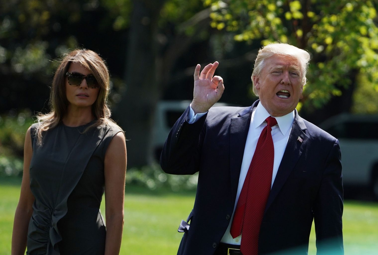 Trump answers reporters questions as he and First Lady Melania Trump head to Camp David, Sept 8, 2017