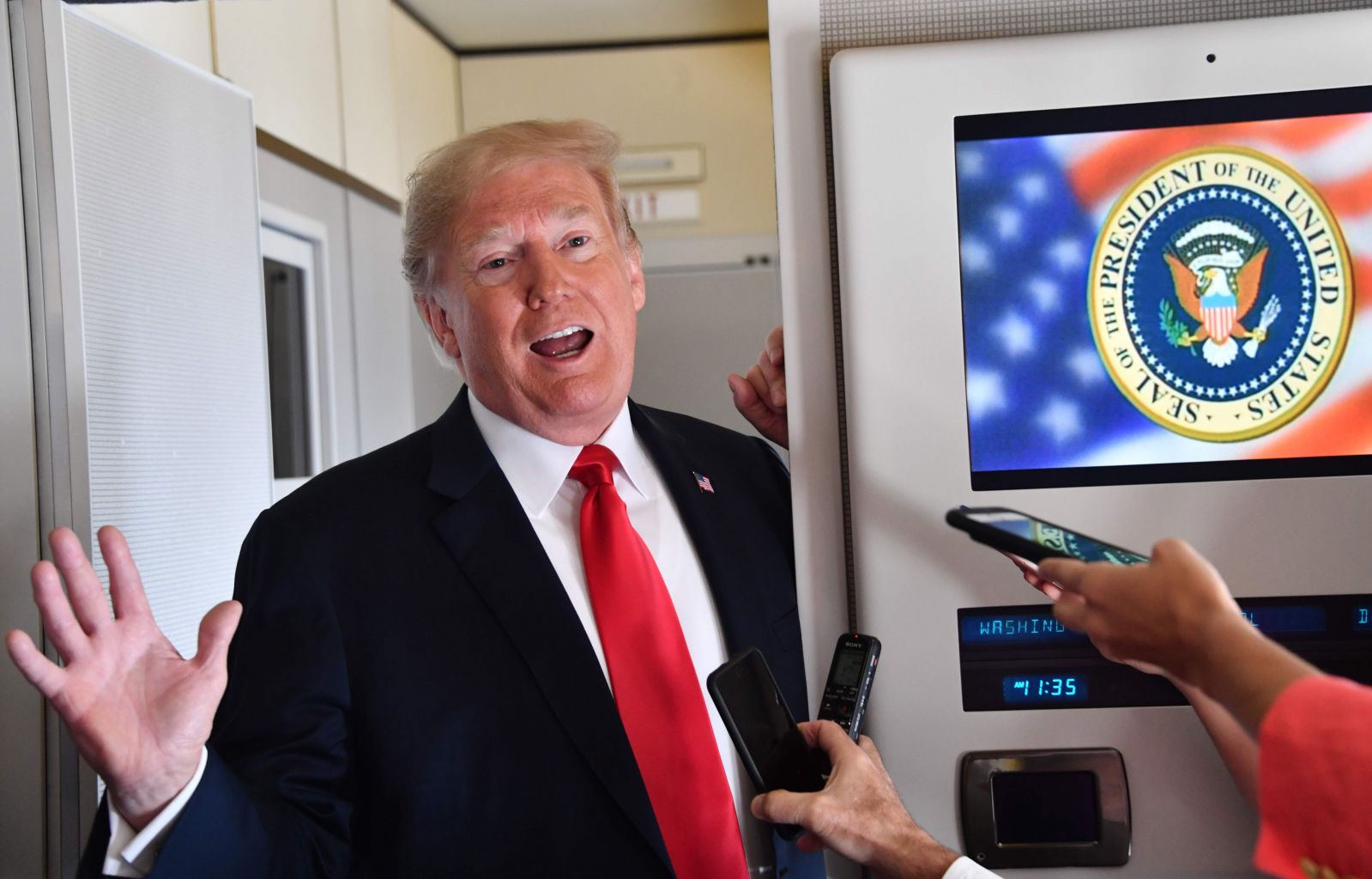 US President Donald Trump speaks to the press aboard Air Force One on Sept 7, 2018.