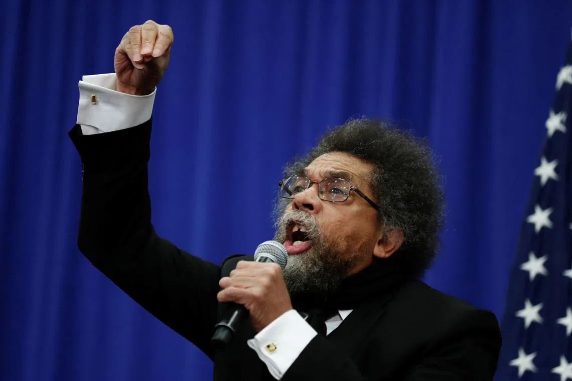 Political activist Cornel West at a town hall in Flint, Michigan, on March 7, 2020.