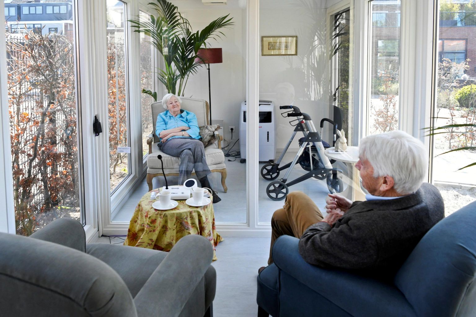 A man visits his wife at a care facility for elderly people with dementia in Wassenaar, Netherlands on April 9, 2020.