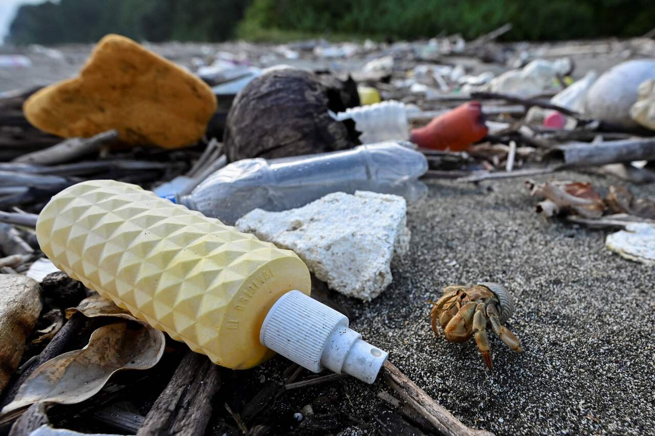 Plastic pollution seen on Gorgonilla Island, in the Pacific Ocean off the coast of Colombia.