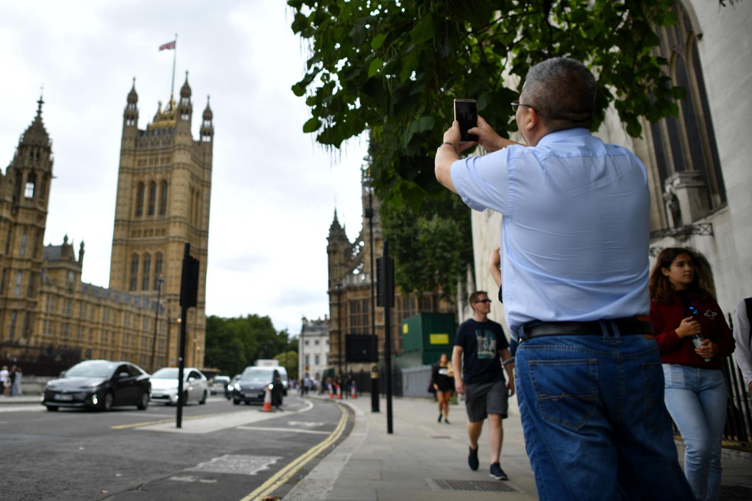 A tourist taking a photograph of the Houses of Parliament in central London, on Aug 15, 2018.